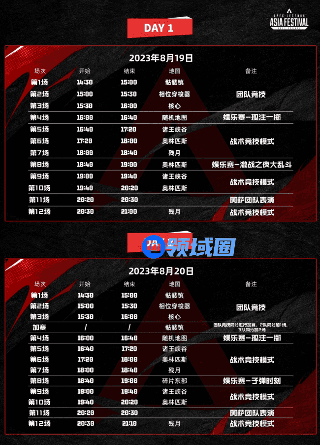 《APEX亚洲尖峰嘉年华》将于8月19日下午2:30正式开幕,全部赛程为期两天,共计24个独立场次。在两个比赛日中,赛事的主赛道、副赛道与娱乐表演赛三个环节将交替进行,确保每一位观众都能够拥有紧凑而丰富的观赛体验。