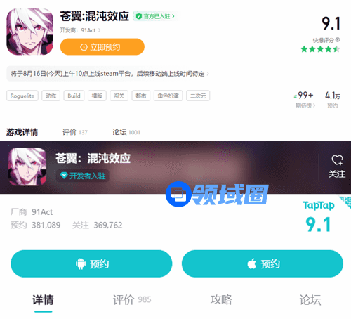今(16)日,91Act(格斗科技)新作《苍翼:混沌效应》(以下简称混沌效应)抢先体验(EA)版正式上线,售价68元,预计明年Q1发售正式版。截止今日发稿时,游戏好评率达80%。