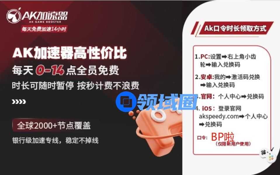 福利时间:玩家使用激活码【BP啦】在AK[个人中心]-[激活码兑换]还可兑换1次抽奖次数和48小时可暂停加速时长哦!