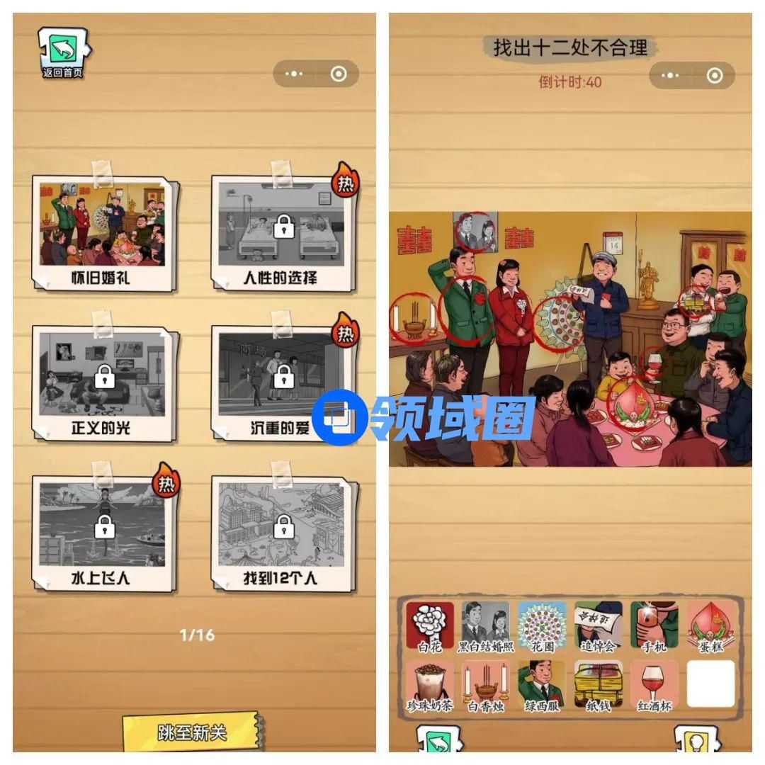 《找茬英雄》是一款益智解谜类小游戏,该游戏玩法与此前大热的那批解谜产品类似,玩家需要在关卡画面中,找出不和谐的元素,这些元素可能与画面主题相关,可能和年代相关,因此十分考验玩家眼力。该游戏来势汹汹,今日(8月14日)一度冲上了微信人气榜魁首。