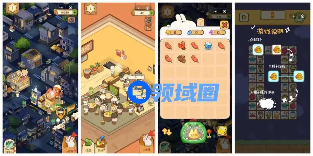 《动物夜市》则是一款萌系画风的模拟经营游戏,辞职创业的小兔子丸仔经营一条夜市街,需要通过经营店铺、招揽顾客、升级店铺、招募店长等等操作来提升店铺收益。除了常规的经营和成长模块之外,该游戏还在游戏的主线之外增加了许多有趣的小游戏,比如点击扭蛋机,玩家就可以通过二合的方式获得解锁新菜品的道具;再比如在奇妙连连看栏目中,玩家可以只要在规定时间内通关连连看,即可获得大额四叶草奖励,四叶草也用于升级菜品,小游戏的加入极大地丰富了游戏的内容量。
