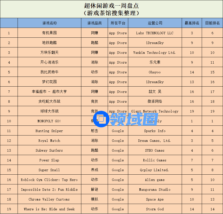 休闲新游周报每周统计微信小游戏、QQ小游戏、抖音小游戏、硬核小游戏以及App Store和Google Play上的新游爆款,并按照分类制作表格,将游戏排名情况等信息公布,希望给到行业同侪帮助。