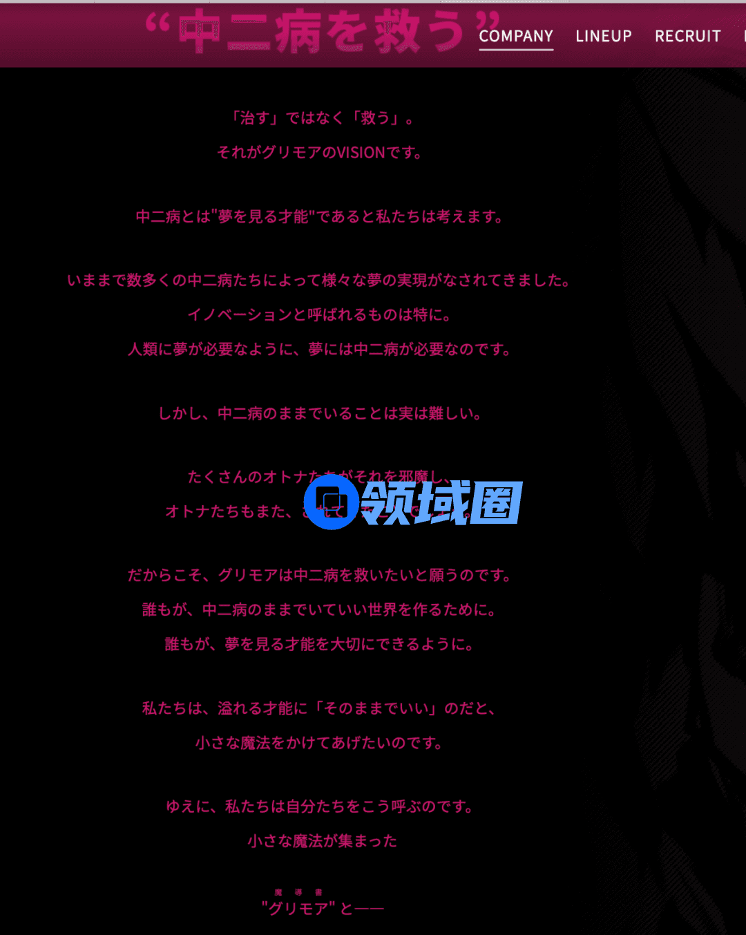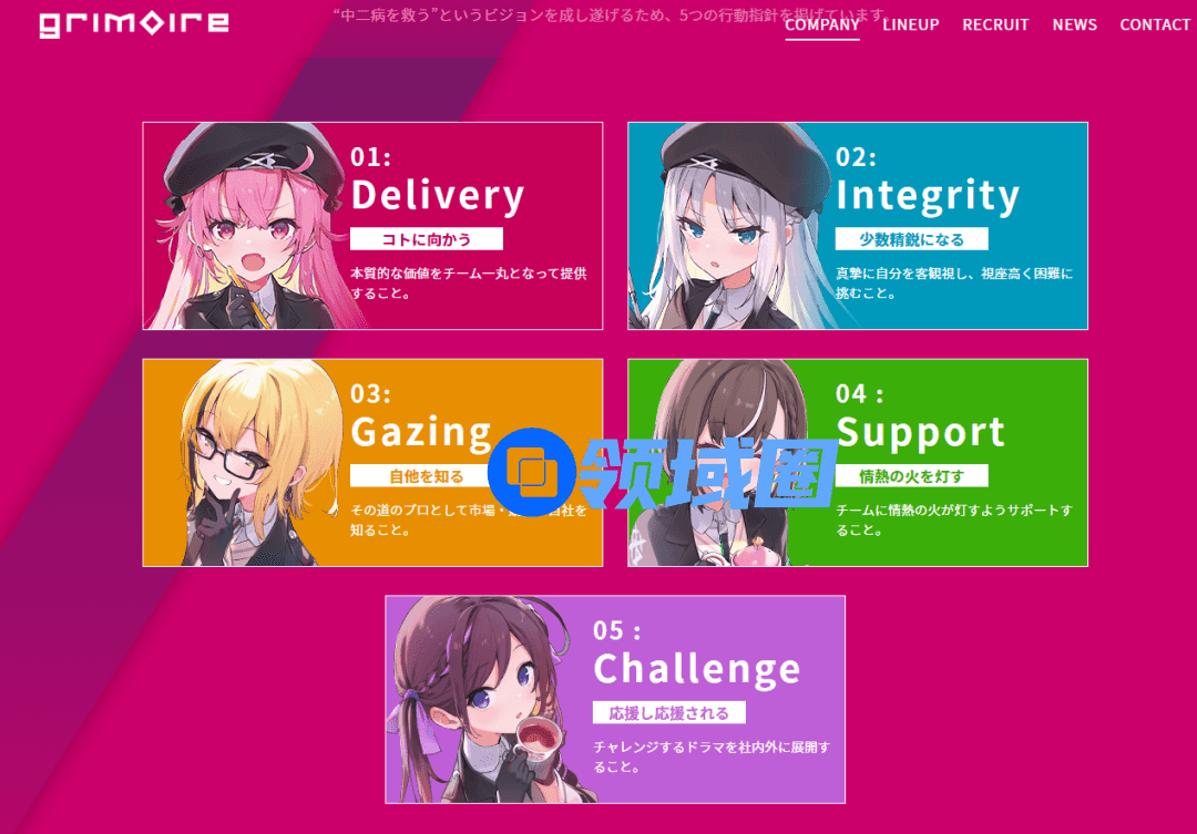 在Grimoire的官网首页写着公司的创社信念,由于日文不太好所以我大部分读不懂,但主要想要表现的中二病拯救世界的主要思想。顺便一提,由于《ReverseBlue×Re-birthEnd》也看上去非常中二,所以我第一时间差点以为这是游戏的介绍,毫无违和感。
