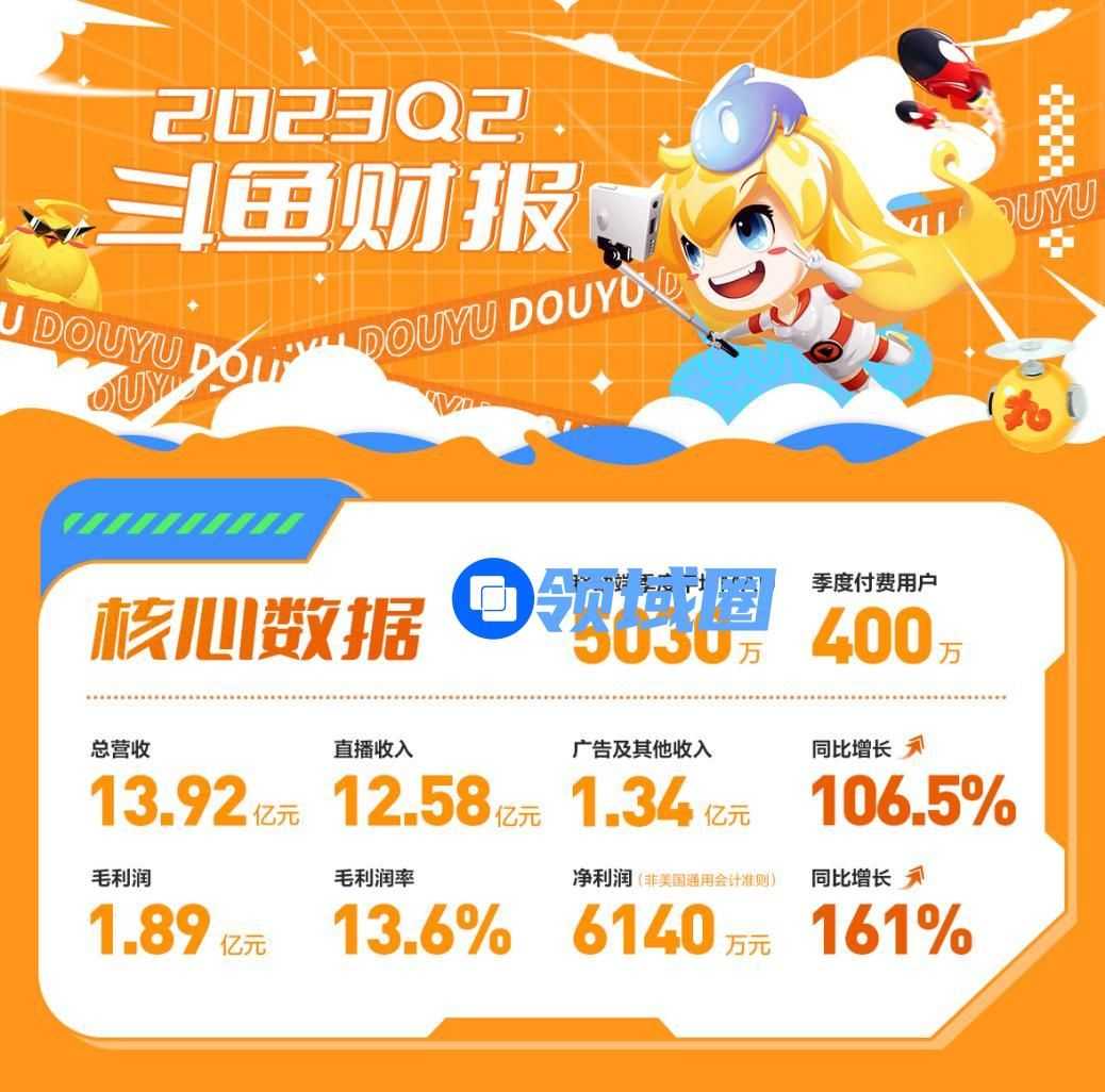 北京时间8月14日,斗鱼(NASDAQ:DOYU)发布了2023年第二季度未经审计的财务报告。第二季度,斗鱼继续执行长期可持续的发展策略,通过丰富和活跃平台游戏社区生态,以优质的内容服务和产品体验驱动平台用户规模保持稳定。同时,斗鱼继续减少低转化率的营销获客投入,推出多元化的营收活动,升级会员体系等创新营收产品,促进平台用户付费意愿和付费粘性得以提升,从而实现持续性盈利。
