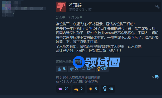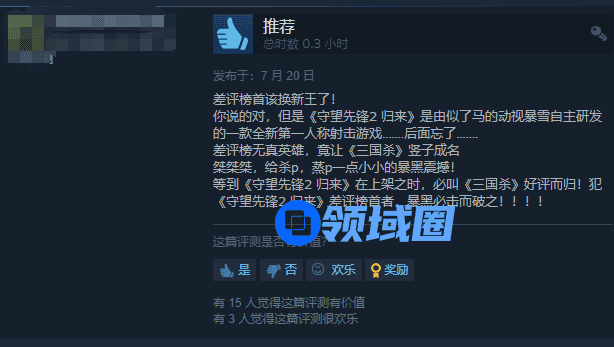 有意思的是,在这万众狂欢之际,Steam的《三国杀》玩家却瑟瑟发抖。在《守望先锋2》正式上线之后,大量玩家涌入到《三国杀》评论区,或以好评威逼利诱,或以差评提前示好,势必让自家的游戏必须争夺这Steam的“第一”。