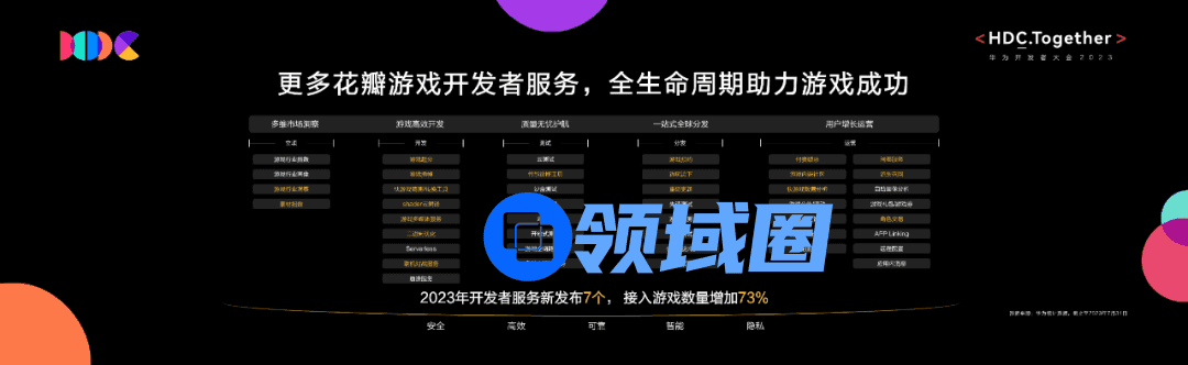 不仅仅是游戏开发者,作为联结游戏开发者和玩家的平台厂商也意识到了行业现状,纷纷面向游戏开发者提供预约、测试和首发服务,助力新游首发实现获量增长。针对游戏开发者在立项、开发到运营各个阶段的痛点,华为游戏中心早在2021年推出了覆盖全生命周期的花瓣游戏开发者服务(Petal Gaming Services,下文简称“PGS”),近两年来持续关注开发者痛点,进行服务的迭代升级,近日,茶馆在HDC 2023上看到了华为游戏中心在这方面更深入的探索。