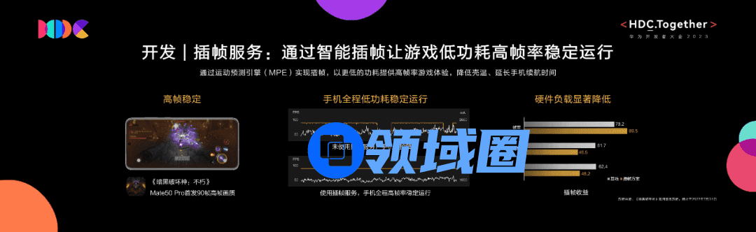 针对性能优化的解决方案,今年PGS重点构建插帧和二进制优化等能力,前者基于软硬协同的优势,通过运动预测引擎实现智能插帧,以更低的功耗提供高帧率游戏体验,降低壳温、延长手机续航时间;后者则通过so文件CPU指令重排,无需集成SDK,即可实现CPU功耗优化。以插帧能力为例,基于华为Mate 50系列全新搭载超帧游戏引擎,《暗黑破坏神:不朽》首发90帧高帧画质,通过智能调度CPU,对游戏画面进行像素级的帧间预测,降低图形渲染能耗,从而在更少能耗和更稳定的帧率下,实现画面更高清流畅、操作更低时延、续航更持久、温控表现更佳。