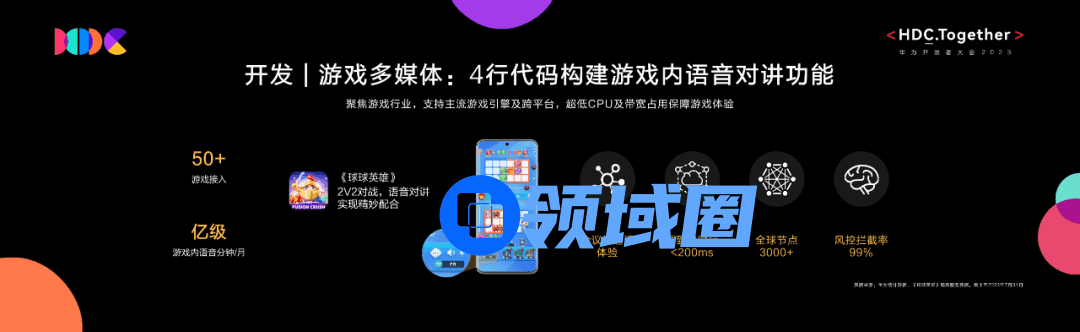 对于玩家来说,在丝滑的游戏体验之外,良好的社交氛围也是他们能在游戏里保持活跃的重要原因之一。为了增加游戏内的互动性和社交浓度、提升玩家粘性,越来越多游戏上线即时聊天功能,尤其是在多人联机对战类游戏中,语音对讲功能更是必不可少。对此,PGS构建了游戏多媒体服务,支持4行代码极简集成,底层技术基于畅连和华为云SparkRTC实时语音网络,保证语音端到端时延小于200ms,达到业内领先水平,不但帮助游戏开发者轻松构建游戏内语音对讲功能,还实现覆盖多种游戏语音场景,并针对违规发言进行风控检测,降低运维成本。据介绍,现在已经有超过50款游戏接入游戏语音对讲功能,每个月游戏内语音分钟数达亿级。