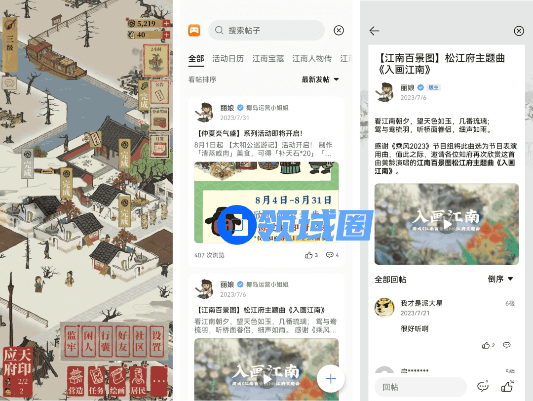 以我们熟知的模拟经营游戏《江南百景图》为例,在接入内嵌社区板块后,产品社区的发帖量、回帖次数和点赞量,以及推荐位的浏览量都得到了显著地提升,从内嵌社区入口进入论坛的用户占比更是高达60%。