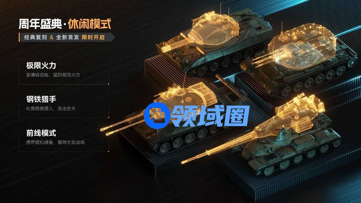 随着周年纪念开启,多种新玩法将陆续降临《坦克世界》。趣味模式——“极限火力”将率先登场,体验奇特的坦克组装方式,8辆改装了自动炮的坦克,将在这一模式中与指挥官们见面。此外“钢铁猎手”模式和带有全新机制的“前线模式”也将在周年活动期间上线。
