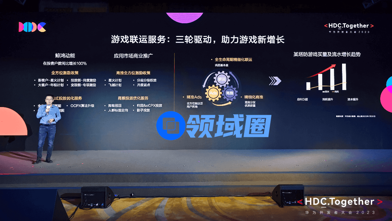具体表现为,华为游戏中心全生命周期精细化联运的基础上,鲸鸿动能一站式投放优化服务通过全生命周期赋能、付费用户深度挖掘与oCPX算法升级实现全方位触达泛用户,加上华为应用市场付费推广的归因&oCPX投放、影子投放和人群标签定向等投放优化服务,精准触达目标用户和潜在高价值用户,促进用户转化。