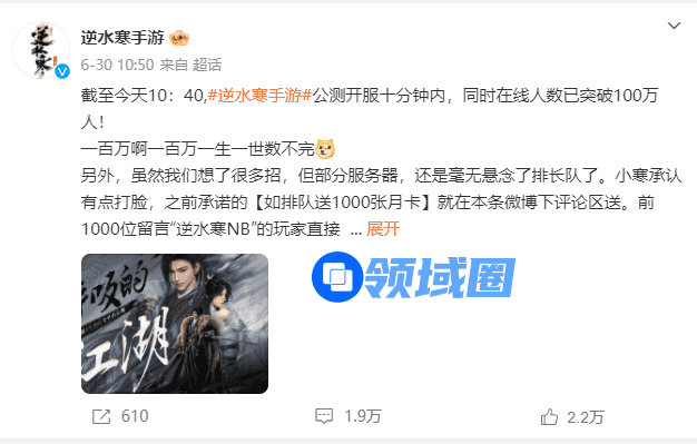 相比其他MMO上线当天异常火爆,《逆水寒》手游的爆火其实在上线之前已经有迹可循。6月27日,《逆水寒》手游提前上线预捏脸系统,仅在当天首批服务器就已满员,官方直呼“顶不住”,立马增设多组新服务器缓解压力。