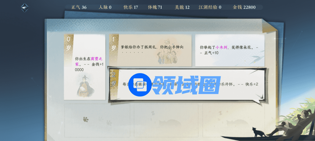 比如游戏中的“混江湖”玩法就是此前大火的《人生模拟器》的改版,玩家可以通过自由选择生成对应的人生路线,从而自行决定自己的命运。