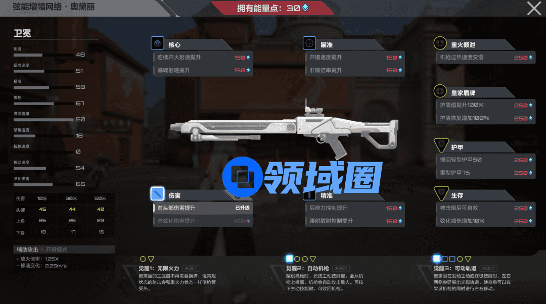 此外,虽然游戏中没有传统射击游戏的买枪环节,不过可以通过击杀敌人和单局胜利获得能量点,以此对枪械和自身能力进行强化,通过不同种类的强化类型组合,还可以解锁三种额外的觉醒增益。对于一成不变的游戏对局来说,这种养成型的设计无疑大大增加了游戏的随机性,也增添了不少额外的乐趣。