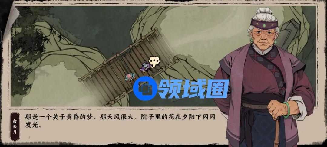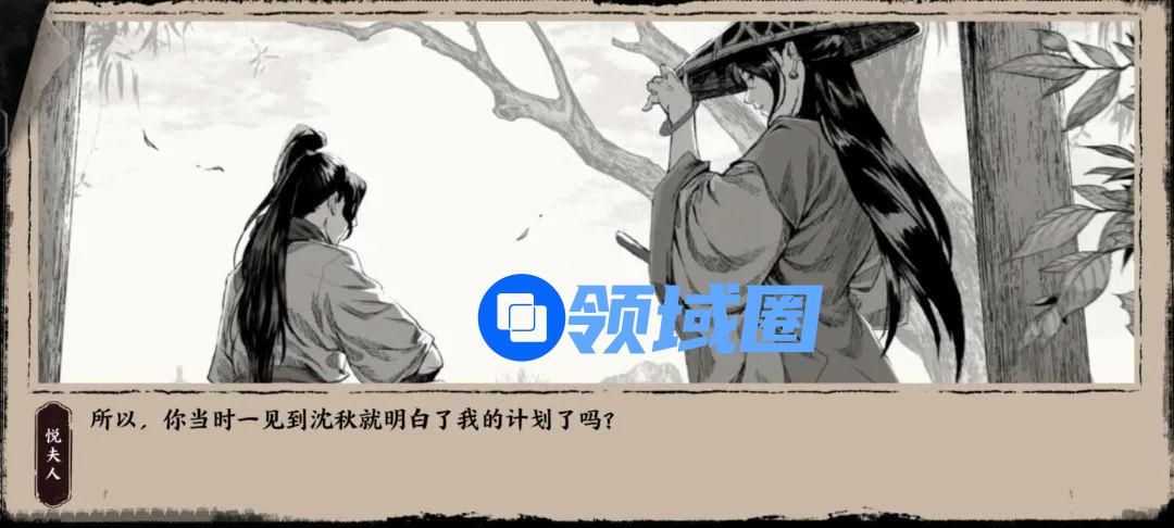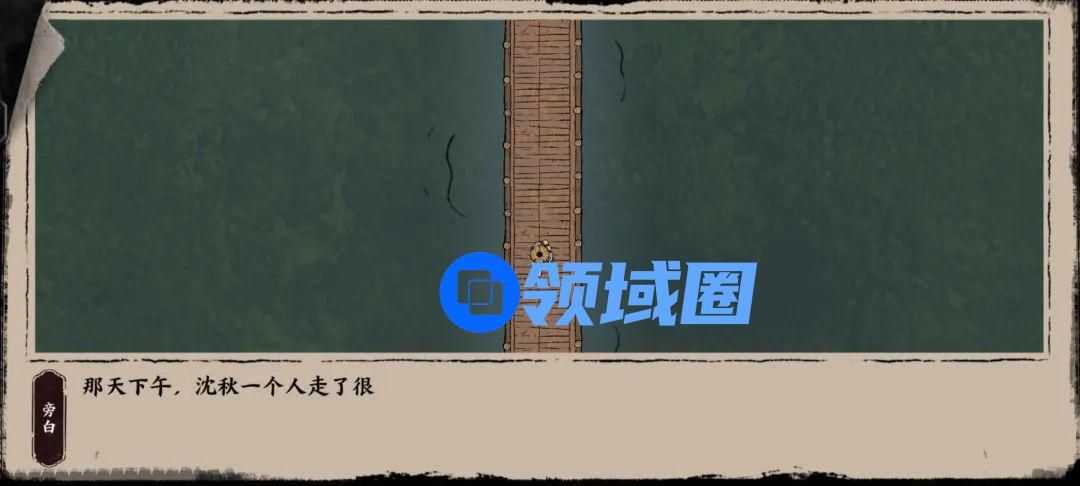 剧情的表现形式足够简洁。游戏剧情推进,连环画翻页。一条竹黄色的栈桥竖跨深绿色湖泊,当主角沈秋出现时,尽管旁白字幕只有画面没有语音,但耳旁似乎传来港片的粤语配音。点击对话,如抚古琴,一串琴声传出,或急或慢,让对话的氛围似乎增添了一份深思熟虑或是阴谋。人物立绘带有风尘仆仆江湖气,和旧纸张的古朴色调色搭配在一起,而这些都增添了游戏中古朴武侠味道的沉浸感,也让我感到非常惊喜。