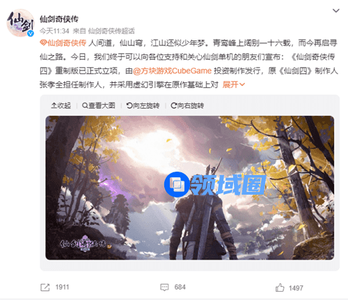 今(1)日,《仙剑奇侠传》官方微博公布更多4代重制版细节。《仙剑4重制版》由方块游戏投资制作发行,将使用虚幻引擎在原作基础上进行完全重制,并且由原4代制作人张孝全继续担任制作人。目前《仙剑4重制版》仍在正常开发中。