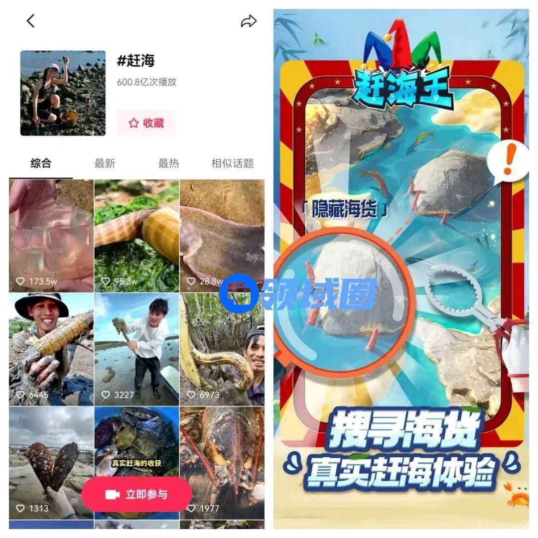 同时,抖音站内活跃的短视频内容生态,也是小游戏开发者极佳的开发灵感来源和分发利器。抖音丰富的热点内容和热门话题非常适合作为小游戏开发原型,实际上我们熟知许多爆款就是从抖音取材打造出来的,比如根据热门话题“赶海”简化出核心玩法的《赶海王》、可以让玩家体验“开石头”的《翡翠大师》、根据“翻新二手车”这一热点内容打造出来的《王牌二手车》等等。开发者将抖音上的热门内容打造成小游戏之后,还可以借助抖音强大的内容分发优势,通过热门话题推送、直播等方式,直接触达对相关内容感兴趣的潜在用户群体,润物细无声地抓住核心玩家的目光,从而获得高点击、高转化。