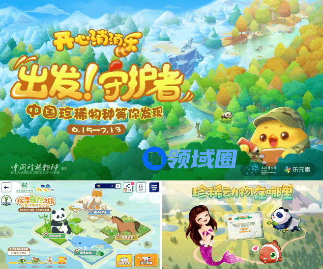 今年夏天,乐元素携旗下精品游戏矩阵《开心消消乐》、《偶像梦幻祭2》、《开心水族箱》,与上海科技馆、上海科技馆分馆-上海自然博物馆合作,共同开展珍稀物种公益科普活动,为期超一个月之久。在活动中,玩家化身“巡护员”,去高山深谷,去原始森林,去肥沃平原,去皑皑雪山,探访大熊猫等珍稀物种的栖息地,了解我国重点保护野生动植物的知识,发掘生物多样性的奥秘。