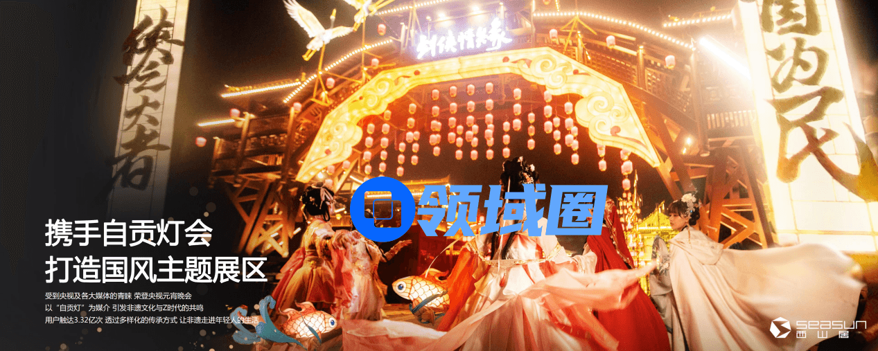 今年剑网3携手自贡华侨城在第29届自贡灯会中打造了沉浸式国风主题灯组展区-天街灯市,此次联动我们以“自贡灯”为媒介,引发非遗文化与Z时代的共鸣。受到央视及各大媒体的青睐,荣登央视元宵晚会,用户触达3.32亿次,游戏文化透过多样化的传承方式,让非遗走进年轻人的生活。
