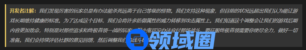 在暴雪看来,他们很高兴的看到厉害的玩家总是有办法杀死远高于自己等级的怪物,但目前的状况远超出他们认为能让游戏长期维持健康的标准。因此,经过慎重考虑,他们一致决定将防御属性转移到了伤害数值上,因为想要征服终极的BOSS玩家必须用尽全力,胆小鬼可没办法应付这样的战斗。