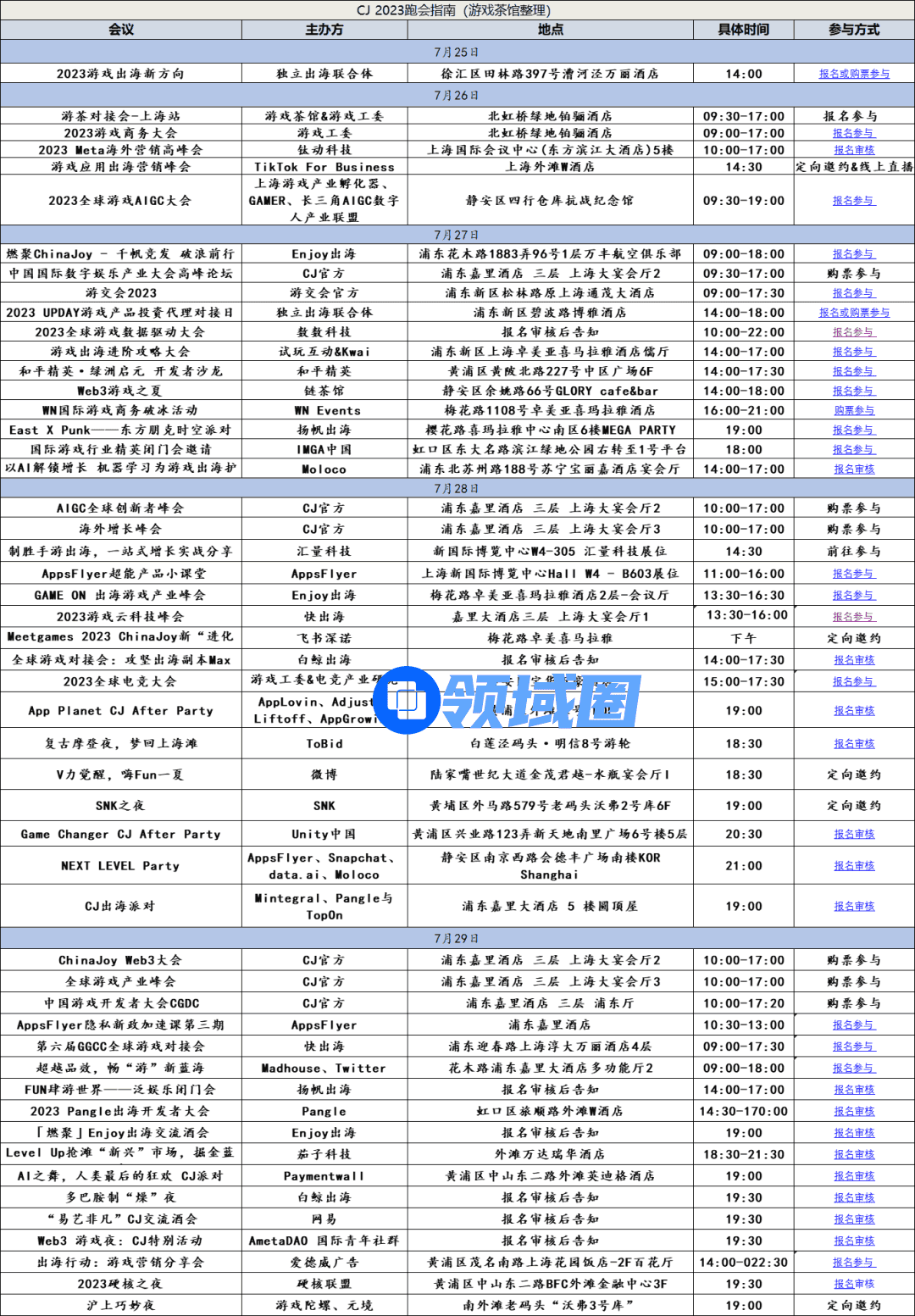 CJ虽然已经复办,但行业还在恢复期,活动并不是太多,远没有达到2019年时数量。但借CJ这个机会,一些行业交流会、高峰论坛以及大家喜闻乐见的酒会等活动都有。游戏茶馆近期整理了CJ相关行业活动,供从业者参考。活动肯定会有遗漏,欢迎大家在评论区告知,方便我们后期补全。