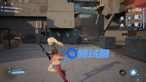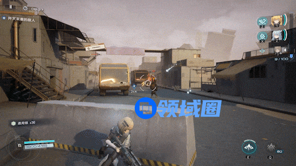 游戏采用三人组随时切换的编队模式,角色与对应的枪械种类绑定,有手枪、狙击、霰弹、冲锋等,每个角色自带小技能与充能释放的大招,以及一个通过QTE角色切换触发的被动技能。