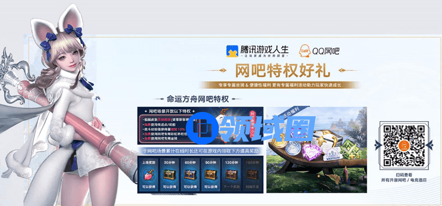 此外,前往网吧、电竞酒店体验《命运方舟》的玩家还可享受专属福利,免费试用场景专属坐骑、船舶皮肤。值得一提的是,网吧特权和游戏内特权将相互叠加,累计登录时长必得传说卡牌包等福利。