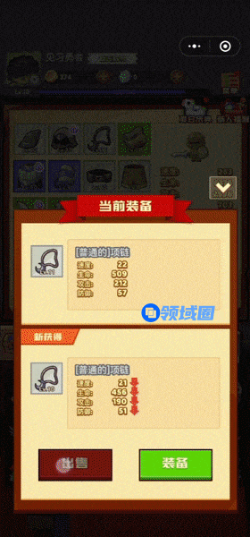 因此玩家可以根据情况对装备进行穿戴或分解。穿戴级别更高装备可以提升人物的攻击、防御、速度,生命等属性,随着养成进度的持续推进,角色各方面的属性数值越高,玩家在冒险通关(PVE)、野外首领(BOSS战)和竞技场(PVP)玩法中,就能更快地获得胜利。