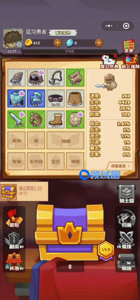 经过对游戏结构的一番调整,《疯狂骑士团》成为了一款以养成线路为主的、与众不同的RPG,也就是我们所谓的“开宝箱”游戏。