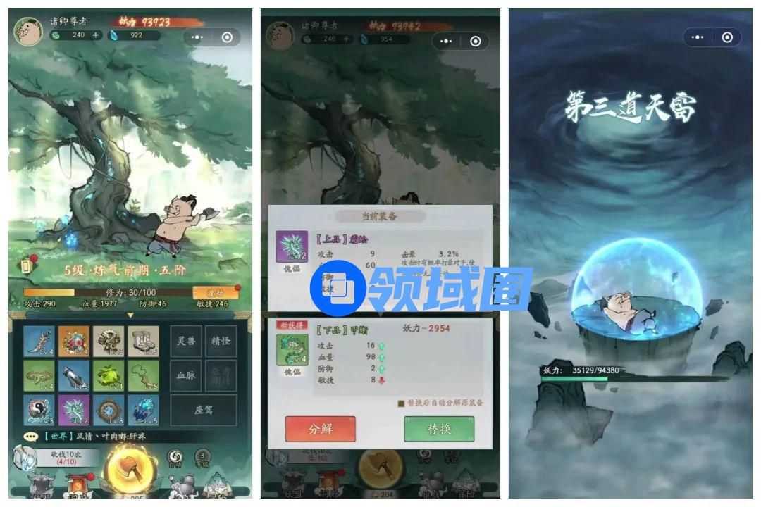 经过包装后,开宝箱变成了砍仙树;升级变成了炼气、筑基、元婴等境界提升,在境界提升的过程中,还额外增加了渡劫的过程;妖王、灵兽、仙友、妖力……这类“修仙味儿十足”的表述在游戏中随处可见。