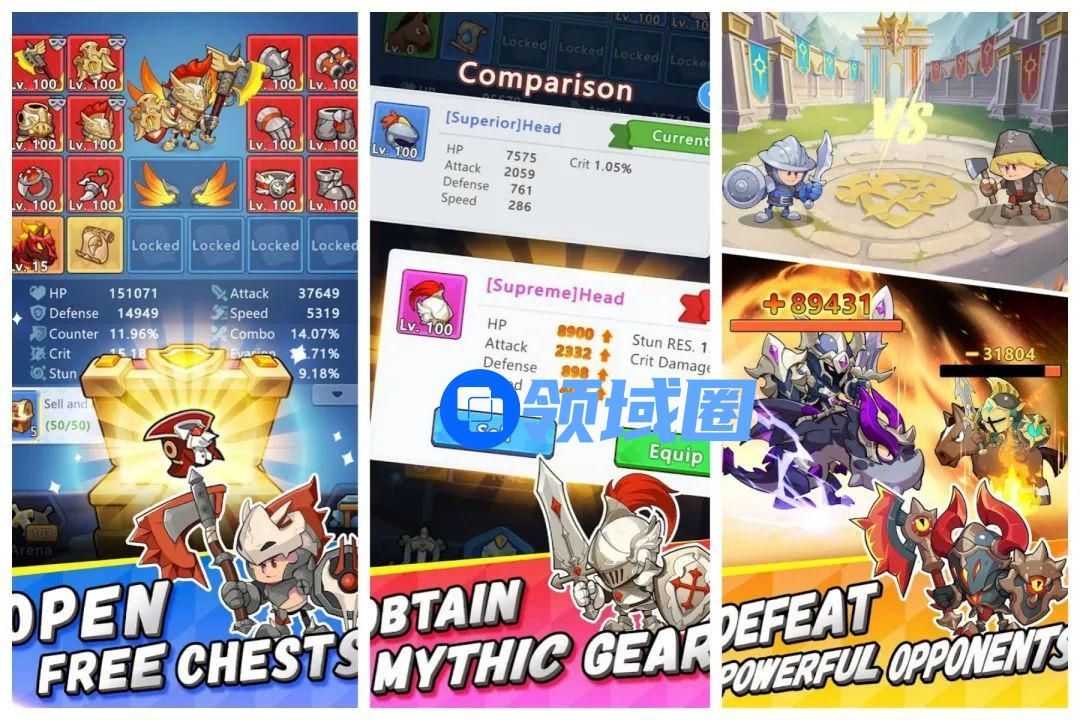 以《疯狂骑士团》为例,玩家在进入游戏后,就能够直接开启宝箱获得各种装备,这些装备分为普通、优秀、稀有、史诗、传奇、天赐、神铸等不同品质,装备的品质越好、级别越高,能为角色带来的属性加成就越多。