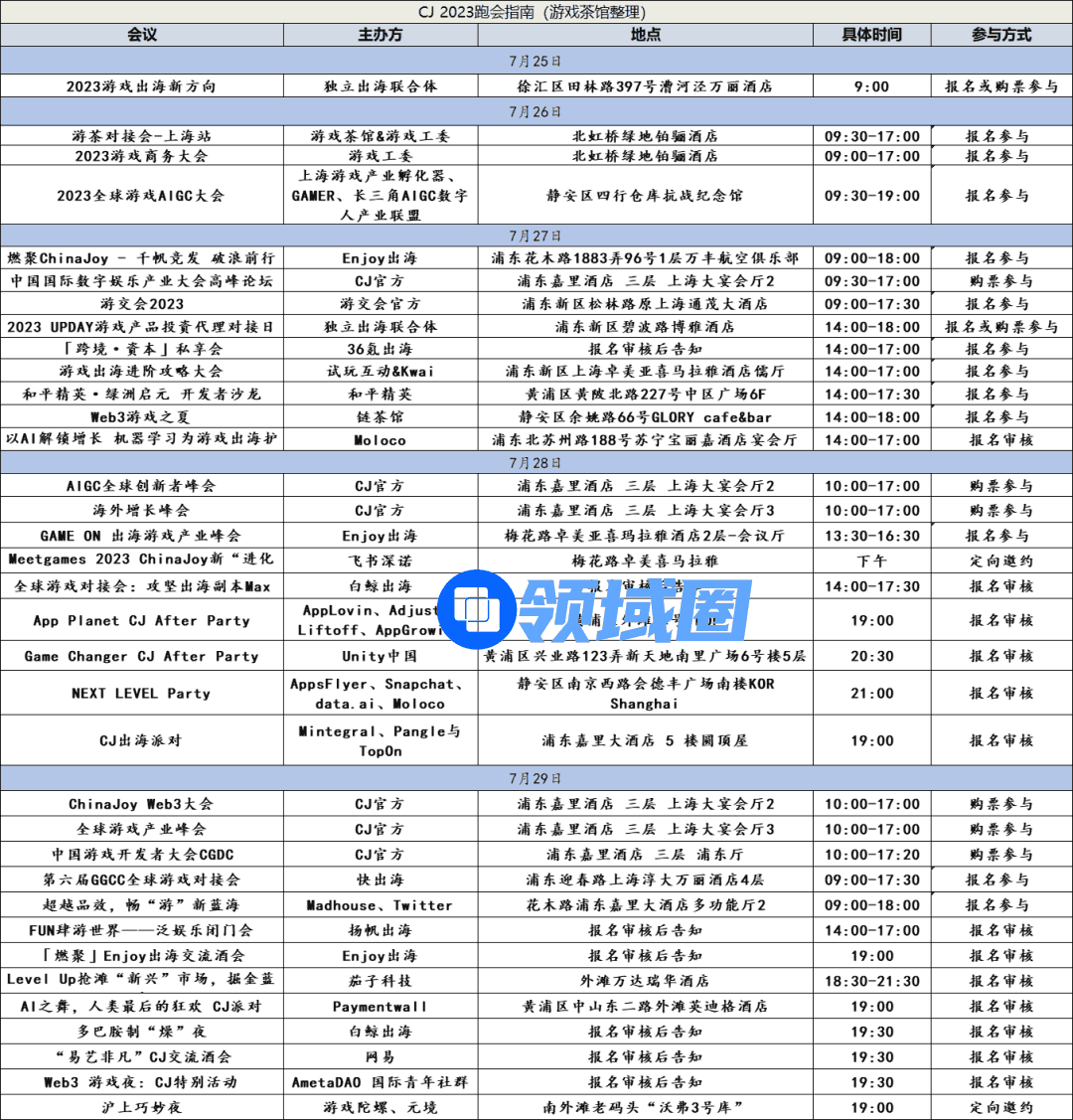 CJ虽然已经复办,但行业还在恢复期,活动并不是太多,远没有达到2019年时数量。但借CJ这个机会,一些行业交流会、高峰论坛以及大家喜闻乐见的酒会等活动都有。游戏茶馆近期整理了CJ相关行业活动,供从业者参考。活动肯定会有遗漏,欢迎大家在评论区告知,方便我们后期补全。