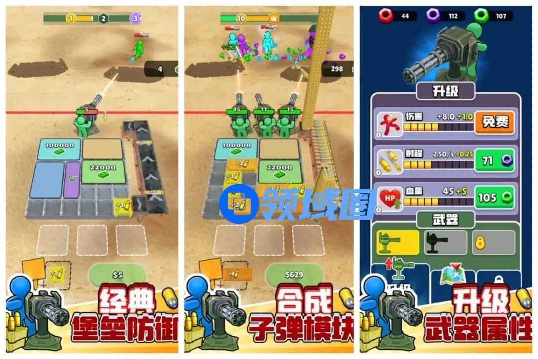 从玩法来看,《末世堡垒 - 守卫家园》是一款以合成+塔防为核心玩法的产品,玩家合成子弹提高我方的防御能力,消灭来犯敌人,获得工具和货币奖励,同时花费装备和货币又能进一步升级武器属性、扩展装备区域。