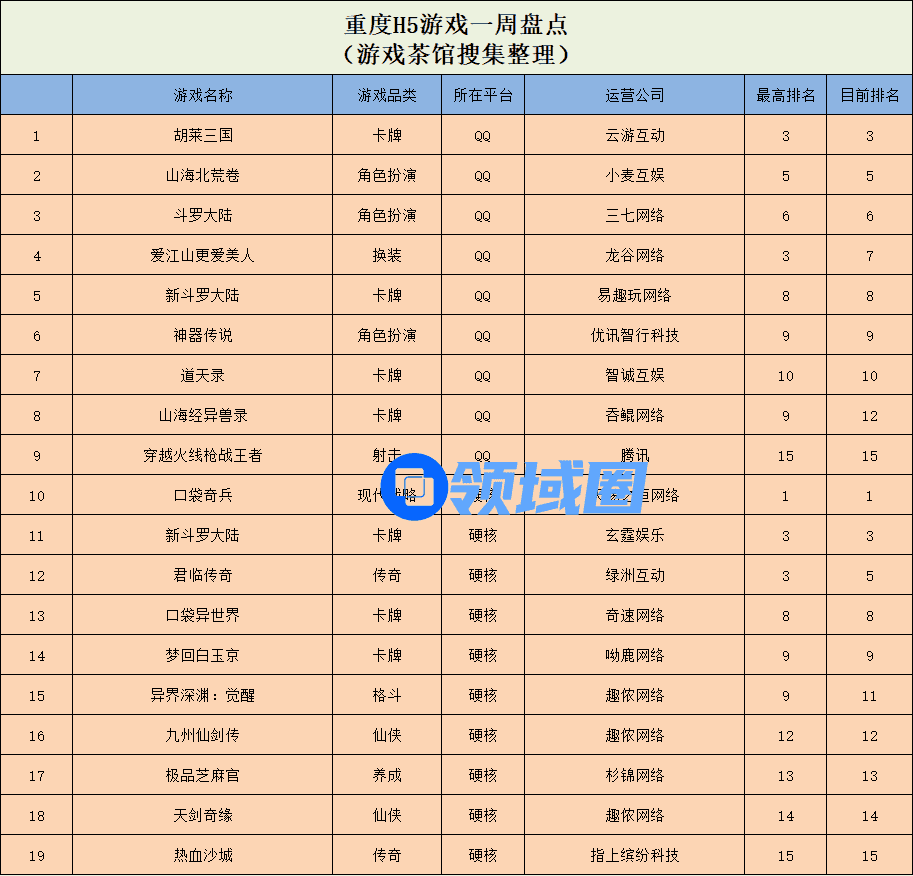 重度H5游戏:《神器传说》冲上TOP10,《梦回白玉京》冲榜