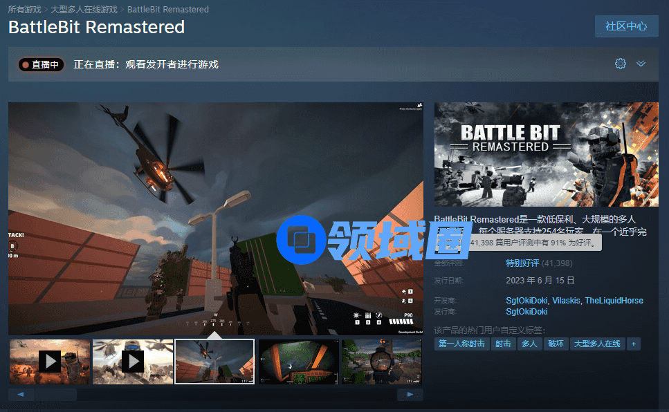 凭借着较为出色的全场景破坏以及纯粹的大型多人对战体验,这款“像素版战地”上线不久,最高在线人数就接近9万人,并获得了91%的特别好评。