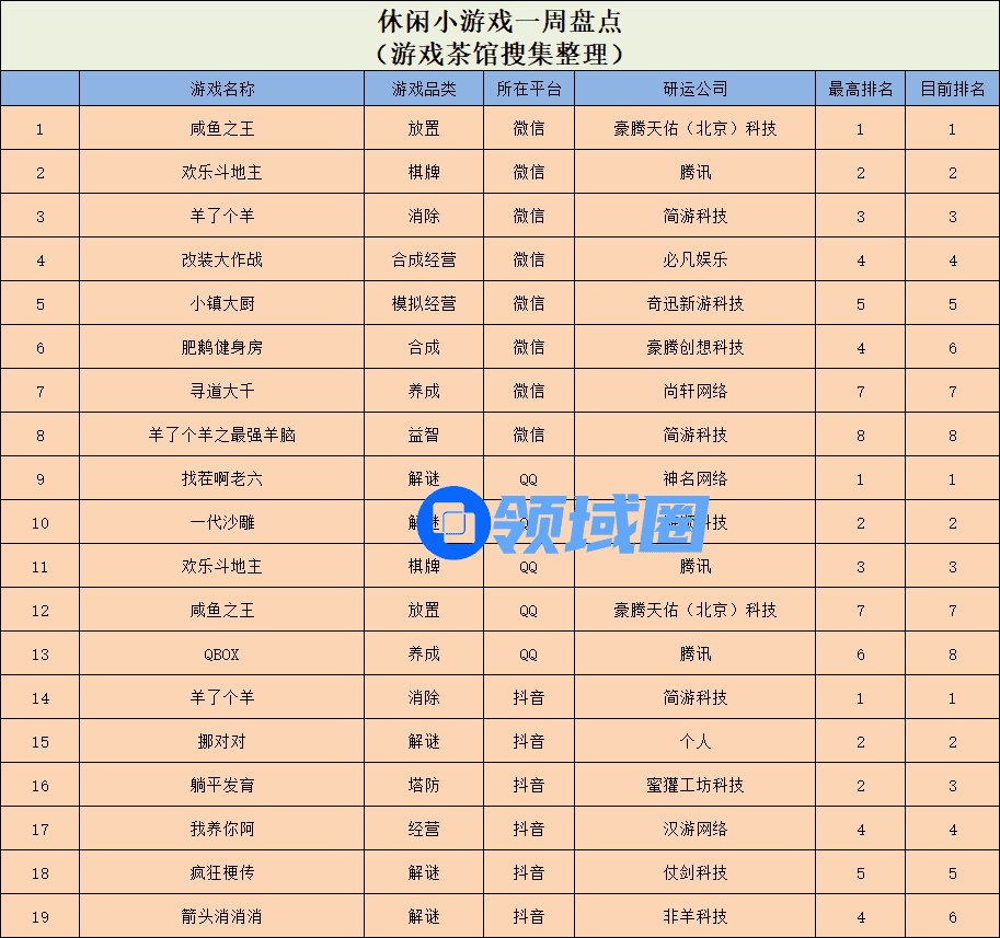 在QQ小游戏平台上,来自神名网络的《找茬啊老六》连续多周稳坐热玩榜首,游顺科技的解谜游戏《一代沙雕》和腾讯的《欢乐斗地主》,分别拿下了QQ热玩榜第2和第3名的好成绩。