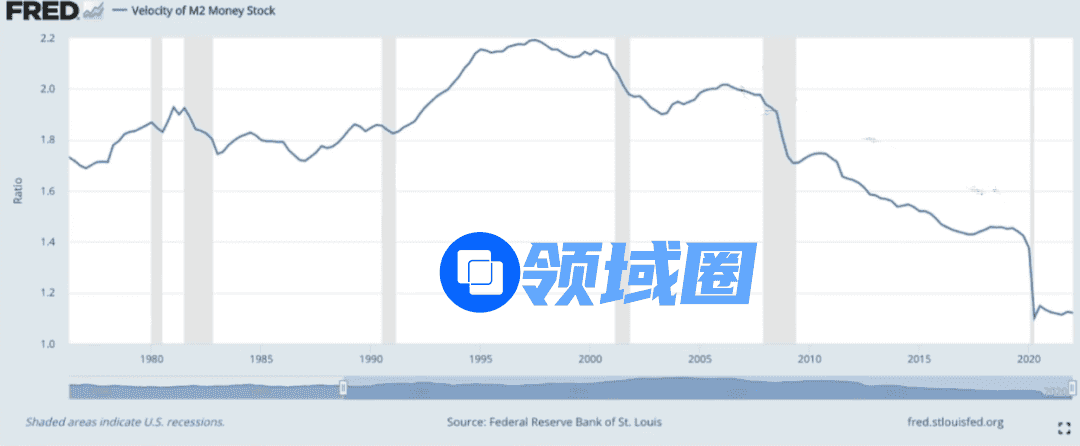 第二点,投资理念的转变。下图展示的是历年美国M2货币的流通速度,结合现实我们可以看到,从2008金融危机至今虽然美国方面这些年陆续有过几次放水的动作,但实际上货币的流动性反而越来越差。