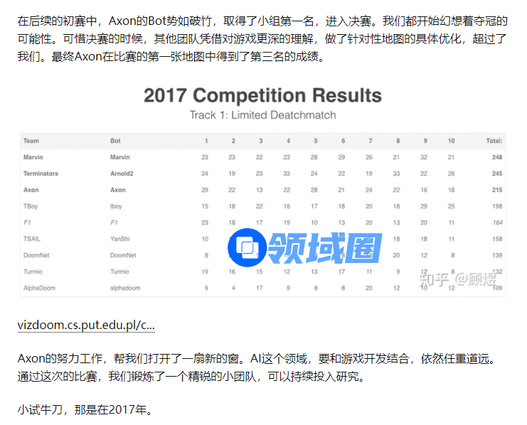 2017年NExT工作室参加的ViZDoom比赛取得第三名的成绩