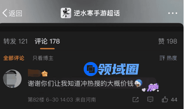 有玩家评论留言表示,“谢谢你们让我知道冲热搜的大概价钱。”