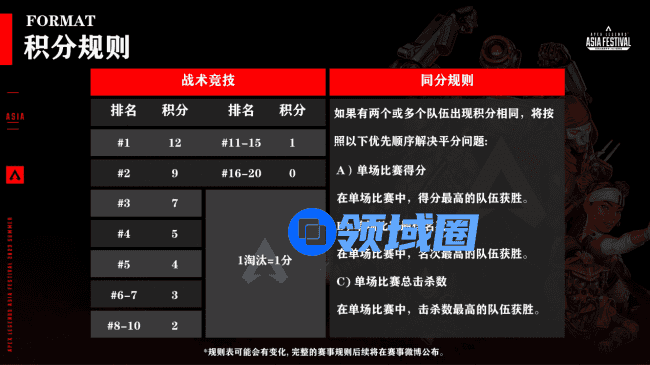 比赛为期2天,每天进行6场积分赛,共计12场比赛,最终通过总积分确定本次亚洲尖峰嘉年华的冠军。当战火燃起,各国选手将凭借强劲的个人实力过关斩将,还是通过团队配合策略致胜?让我们拭目以待。