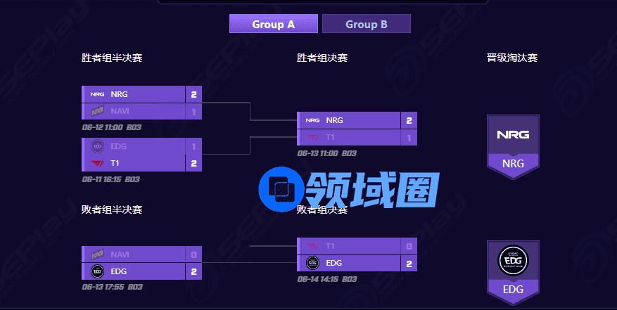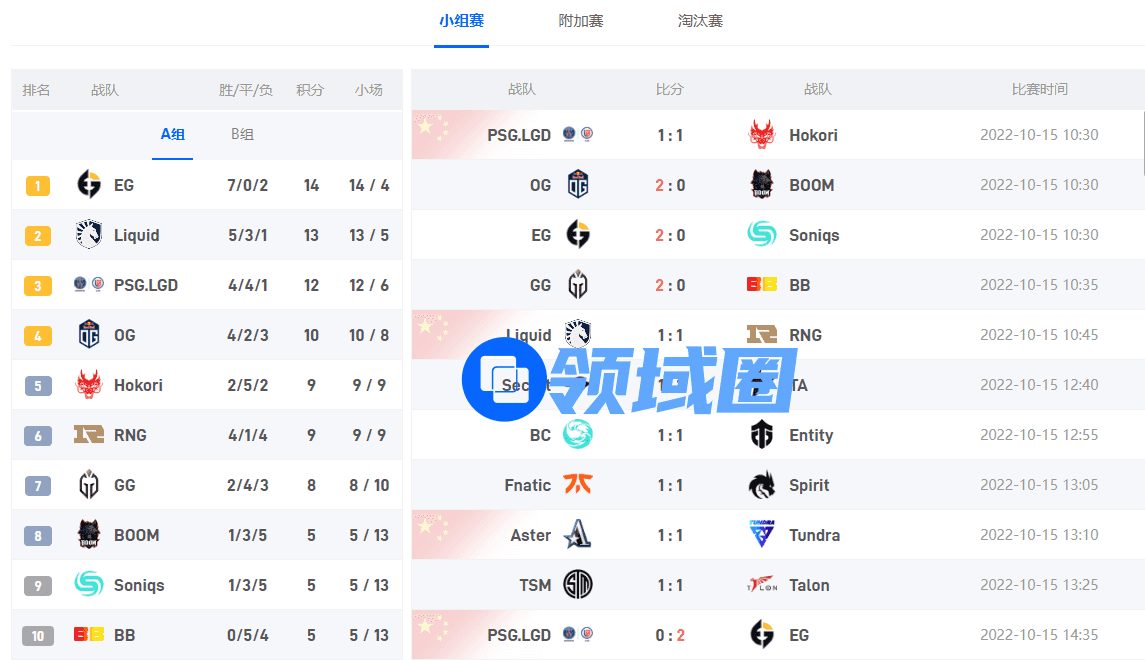 现在来看看TI赛事赛制,以TI11为例子,一共有20支队伍参赛。赛事也分为小组赛阶段和淘汰赛阶段,不同的是没有队伍可以直接越过小组赛,获得淘汰赛的名额。20支队伍会被分配到A、B两组中,进行B2积分循环赛。根据积分排名,每组前四名可以晋级淘汰赛胜者组,5~8进入败者组。