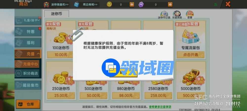 (《迷你世界》禁充弹窗)