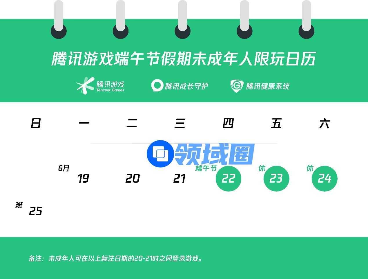 近日,腾讯游戏发布《关于端午假期未成年人游戏限玩的通知》,结合要求与实际放假调休安排,未成年用户可以在6月22日至24日期间的每晚20点-21点之间登录体验游戏,提醒广大未成年玩家合理安排时间,适度游戏。