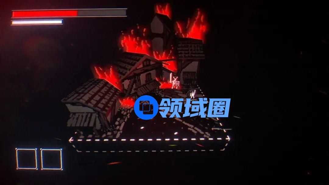 如果你认为像素的表现力不高,那可能就大错特错了。即便看着只是几个纸片人,但《荒绝之剑DX》的视觉表现依旧极为出色。无论是斩杀敌人时的尸体四分五裂,还是背景房屋上燃烧的熊熊烈火,亦或是白茫茫的漫天大雪,简单的色调和图形被使用的恰到好处,以至于有时候常常让我忘记这只是一款极为“简陋”的像素游戏。