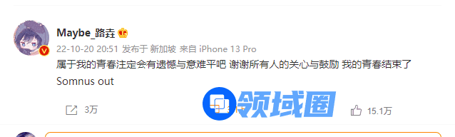同时,RNG的2号位选手Maybe发了一条微博,大概就是虽然有遗憾但是终归要永久告别这个舞台了,无数粉丝在下面刷着“我的青春结束了”。