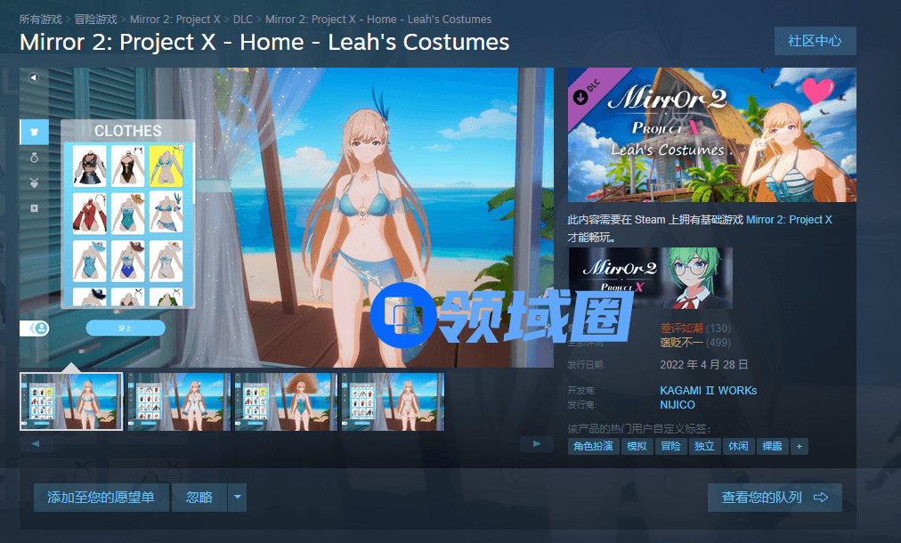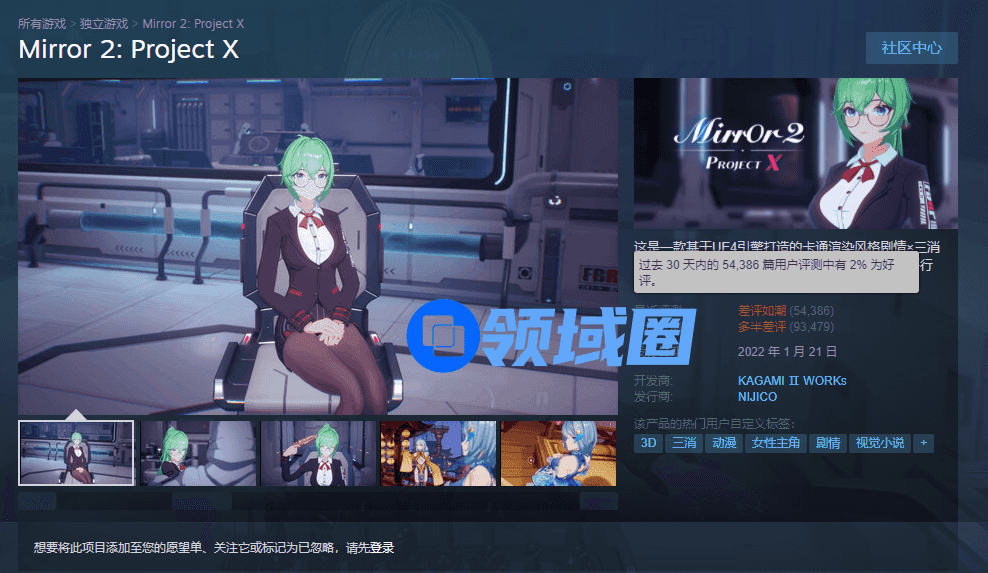随后,其他角色剧情线,家园系统,DLC服装陆续上线,唯独看不到“涩涩”内容的玩家有点急了。就在这时,《Mirror 2: Project X》迎来了第一次口碑下滑,评价变成了多半好评。