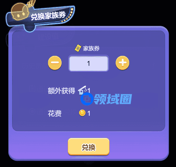 2、通过金币兑换,每花费1金币可兑换1家族券和1建设值