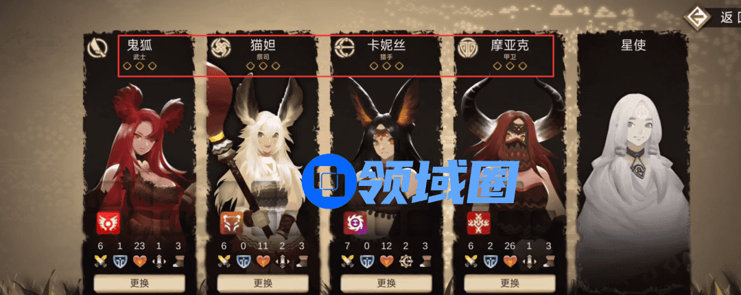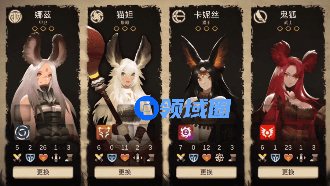 其次,游戏在这个基础之上,还有比较丰富的职业系统,目前分为甲卫、祭祀、猎手、武士与斥候,虽然名词根据设定有了一些改动,但基本上还是涵盖了传统战棋游戏与RPG游戏的大多职业组合,搭配上氏族差异,从英雄单位的个体定位上,游戏就有较为复杂的养成取向。
