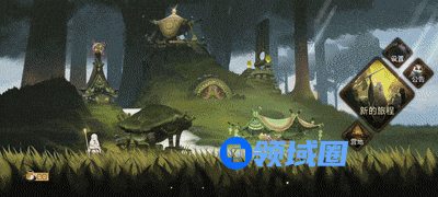 在这之上,各种界面的动效就尤为重要。即便颜色相近容易看混,但只要将画面运作起来,不同层次景观的边缘就会被拉扯,拉开层次感。比方说在主界面的几个分支画面里,颜色背景的颜色都是趋同的,但借助一些动效,如转轮的转动、火焰的摇曳、物体随风吹动的效果,我们也因此把两层画面分开来,而不是重叠一切,分不清楚。