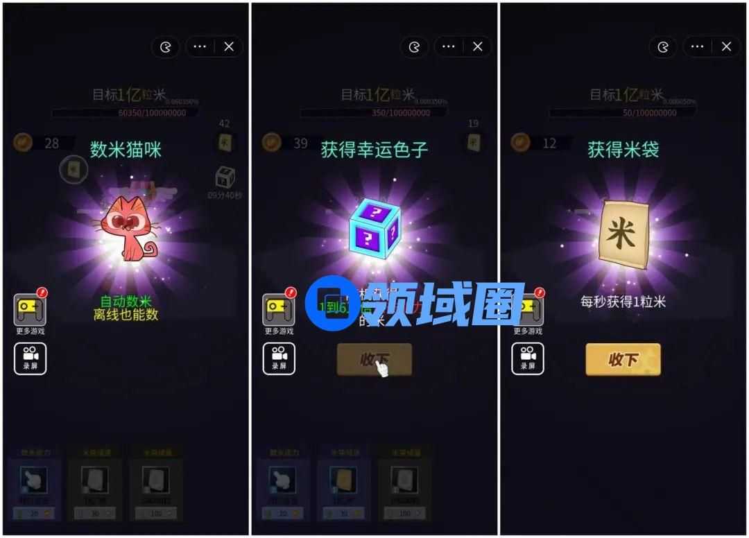 不想数米数到手抽筋的玩家,可以花费金币对能够自动数米的猫咪和米袋进行升级。在这两个帮手的协助下,即使玩家离线或者挂机,也可以不断提升米粒的数量。“欧皇”玩家还可以通过摇骰子的方式,直接获取高倍数的米粒奖励。